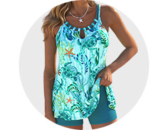 Tummy Coverage Mid Waisted Marine Life Print Tankini Set