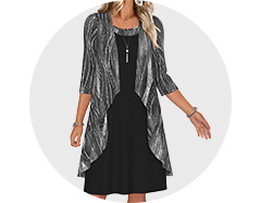 Black Tummy Coverage Geometric Print Dress and Cardigan