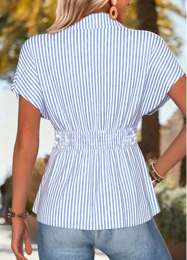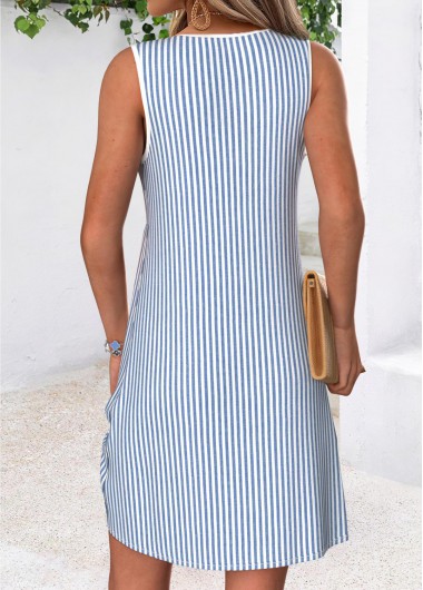 Blue Button Striped Long Sleeve Round Neck T Shirt