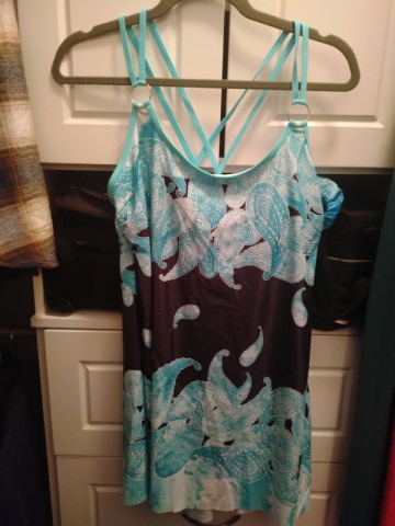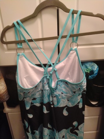Patchwork Ombre Cyan Double Straps Tankini Top