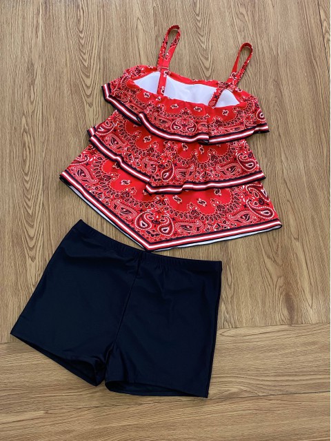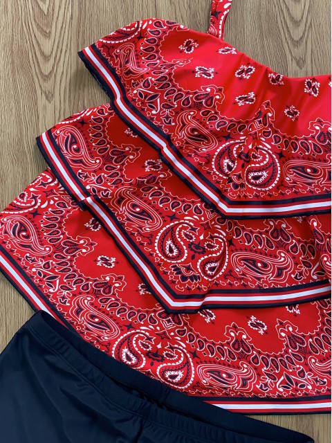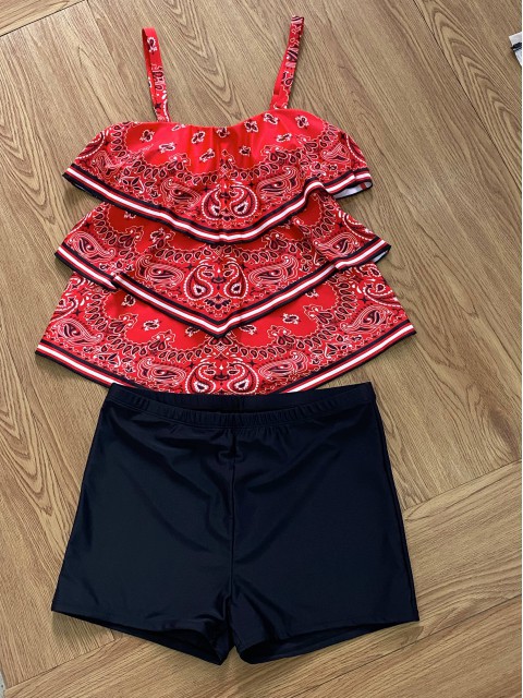 Two Piece Mid Waisted Leopard Red Tankini Set