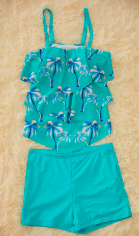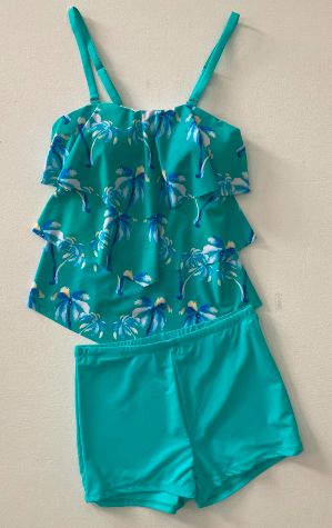 Mid Waisted Paisley Print Sage Green Tankini Set