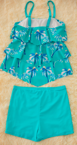 Tummy Coverage Mid Waisted Tropical Plants Print Tankini Set