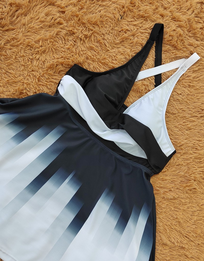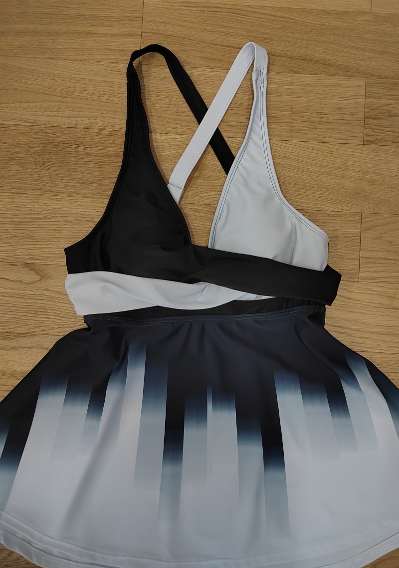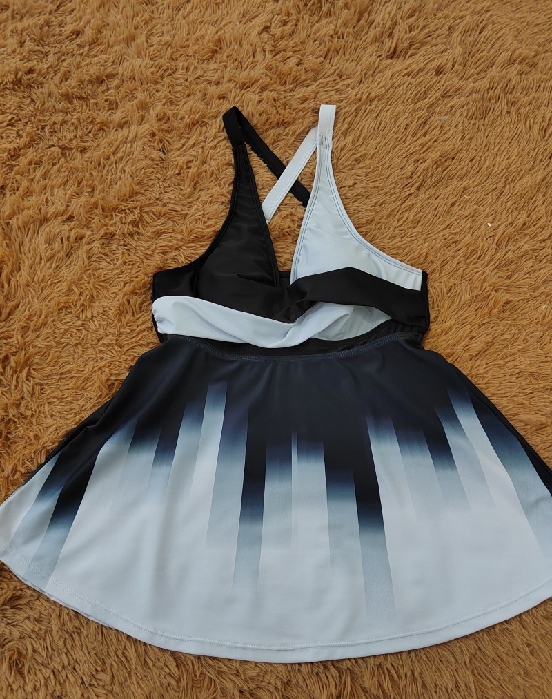 Patchwork Ombre Cyan Double Straps Tankini Top