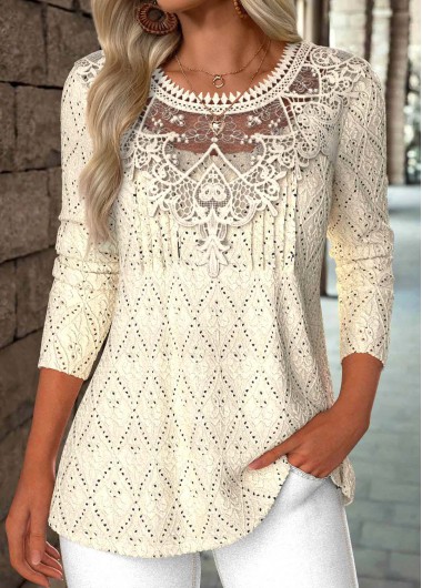 Beige Tummy Coverage Long Sleeve Split Neck Blouse