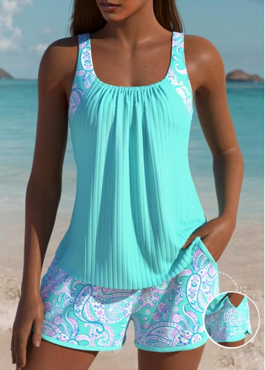 Tummy Coverage Mid Waisted Paisley Print Tankini Set