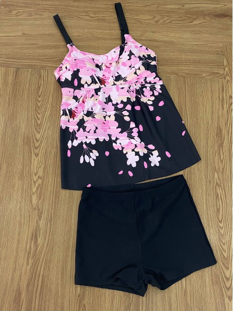 Home / Swimwear Suits  /  Floral Print Pink Wide Strap Tankini Set