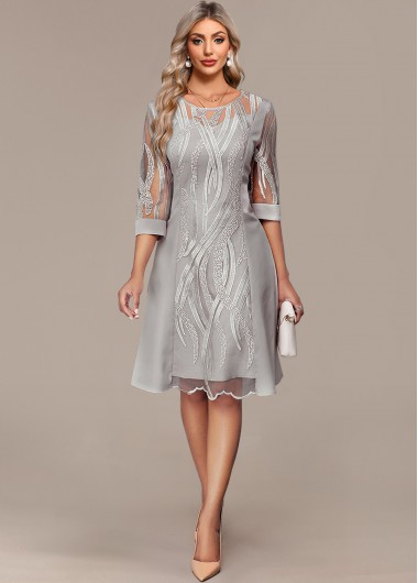 3/4 Sleeve Light Grey Lace Panel Dress