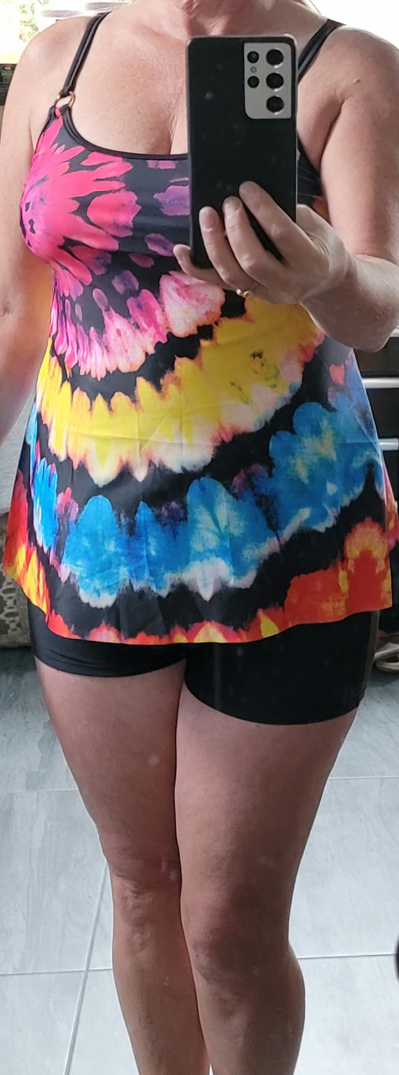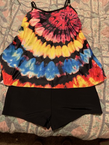 Tie Dye Print Black Tankini Top