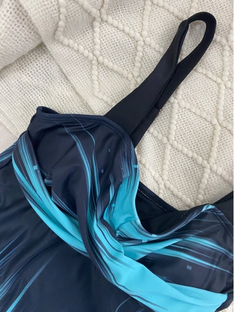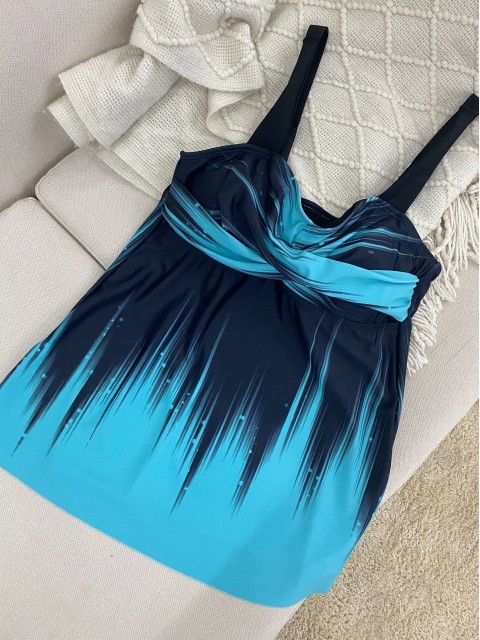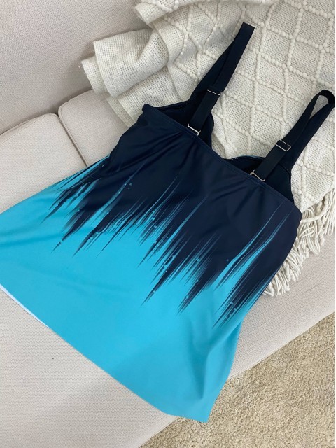 Patchwork Ombre Cyan Double Straps Tankini Top