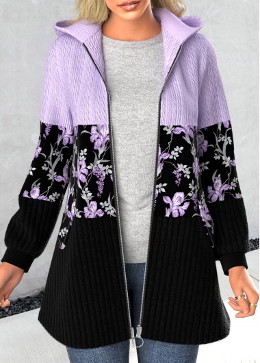 Added Successfully Black Tummy Coverage Floral Print Long Sleeve Coat