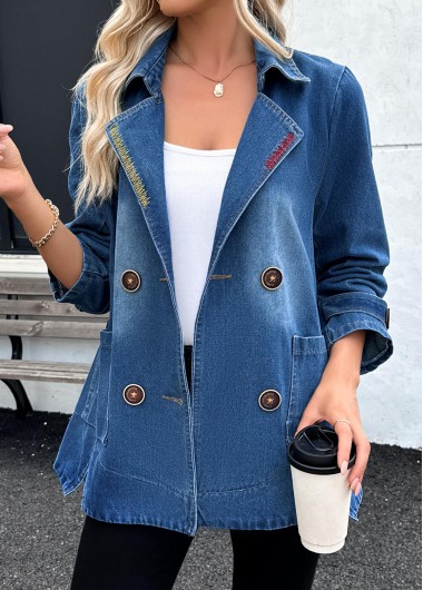Added Successfully Denim Blue Patchwork Long Sleeve Lapel Coat