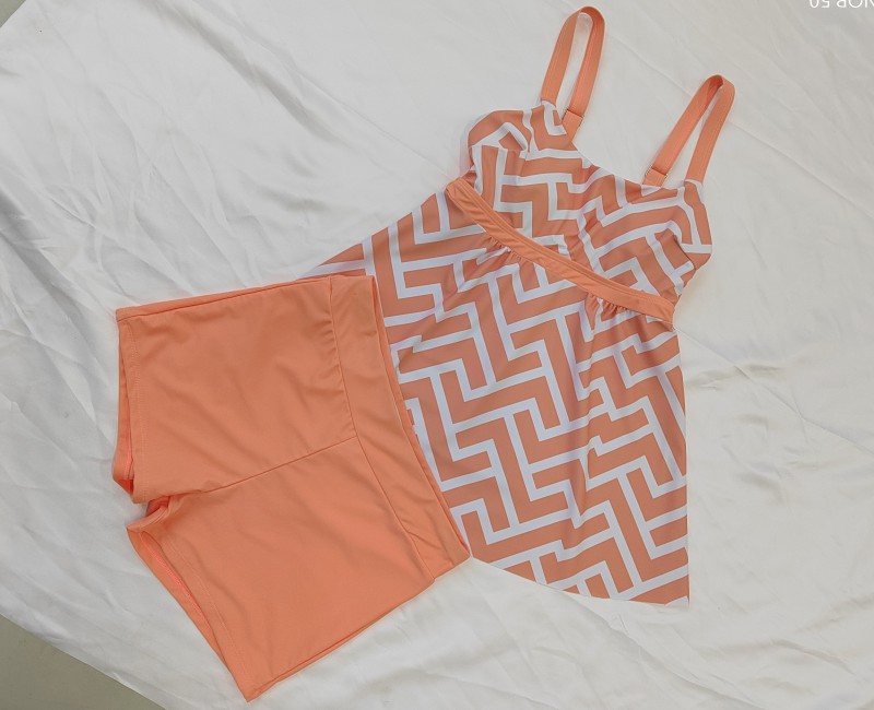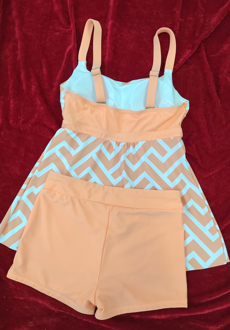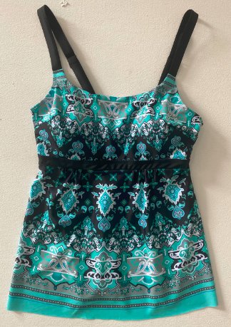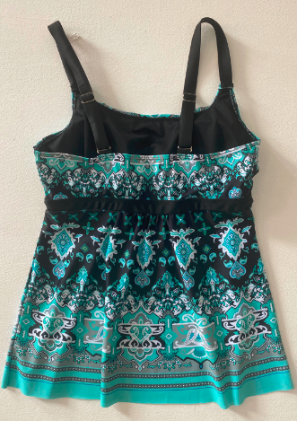 Patchwork Ombre Cyan Double Straps Tankini Top