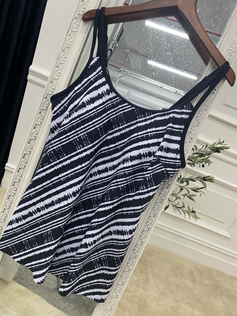 Patchwork Ombre Cyan Double Straps Tankini Top