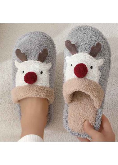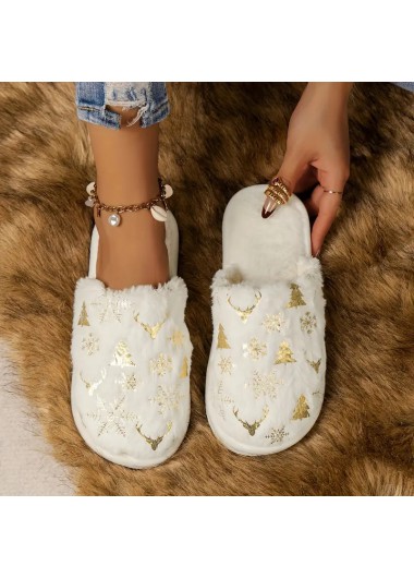 Christmas Beige Elk Print Closed Toe Falt Slippers
