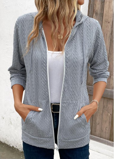 Added Successfully Light Grey Pocket Long Sleeve Hooded Coat