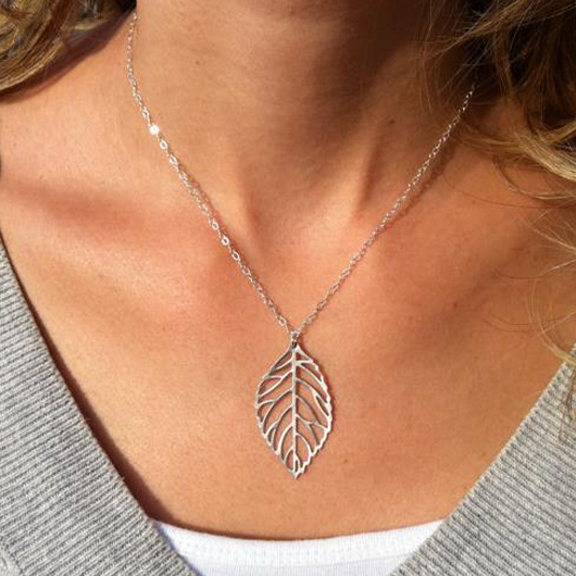 women's clothes / Jewelry / Necklaces & Pendants  /  Alloy Detail Silver Leaf Design Necklace
