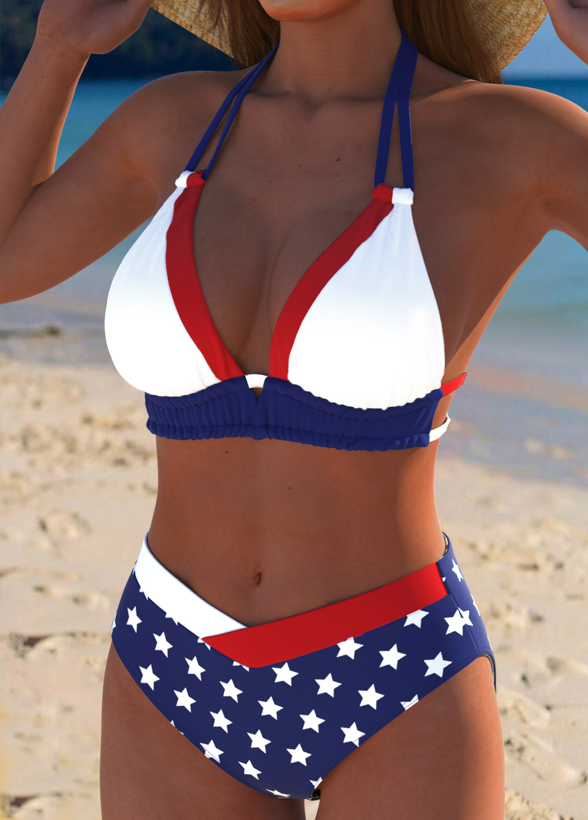 Contrast Binding Mid Waisted Floral Print Navy Bikini Set