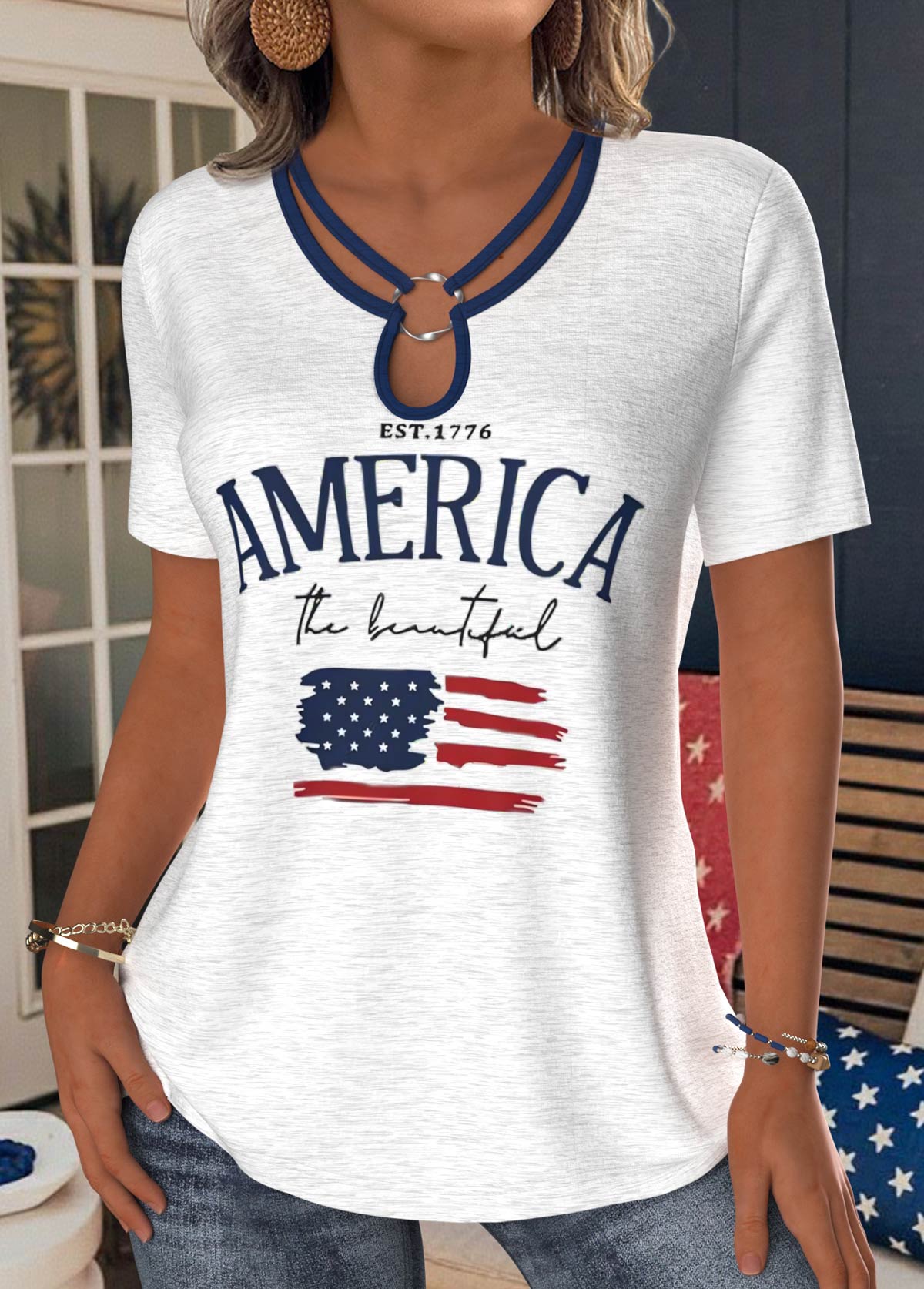 White Curved Hem Short Sleeve Split Neck T Shirt