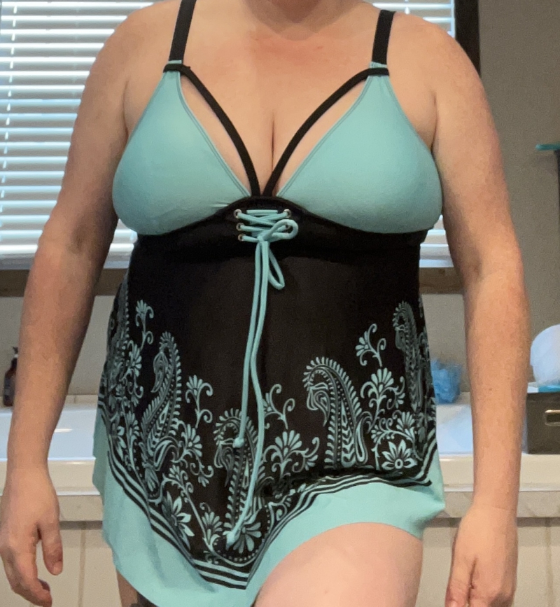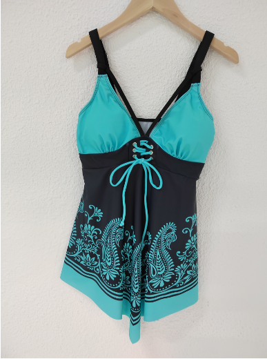 Patchwork Ombre Cyan Double Straps Tankini Top