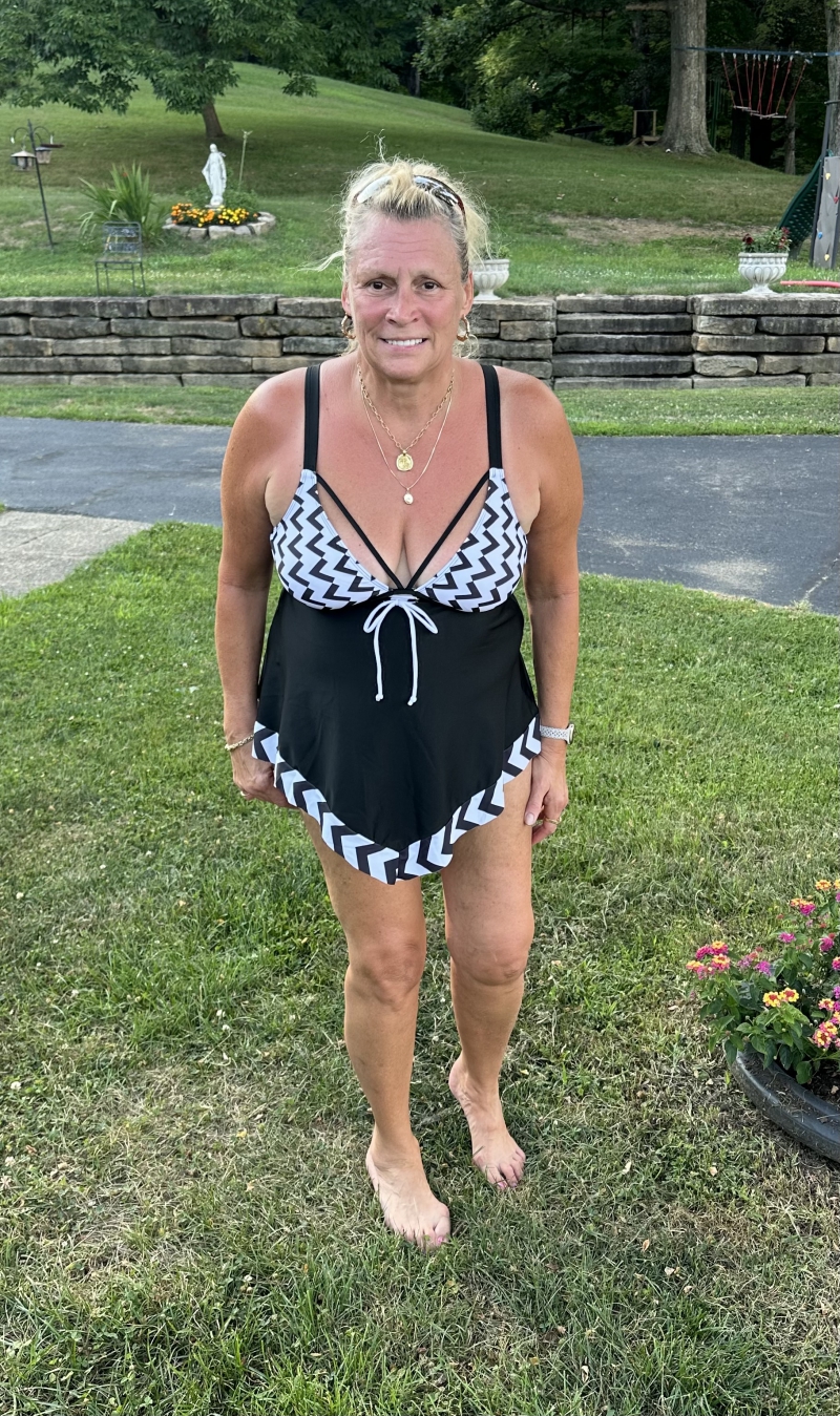 Asymmetric Hem Layered Chevron Print Halter Swimdress and Shorts