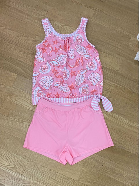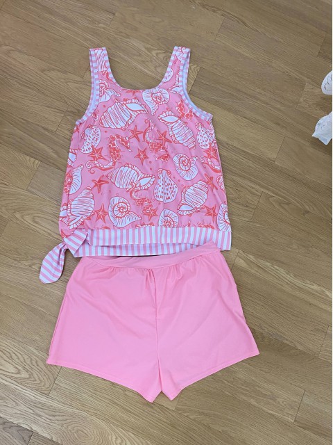 Mid Waisted Marine Life Print Hot Pink Tankini Set