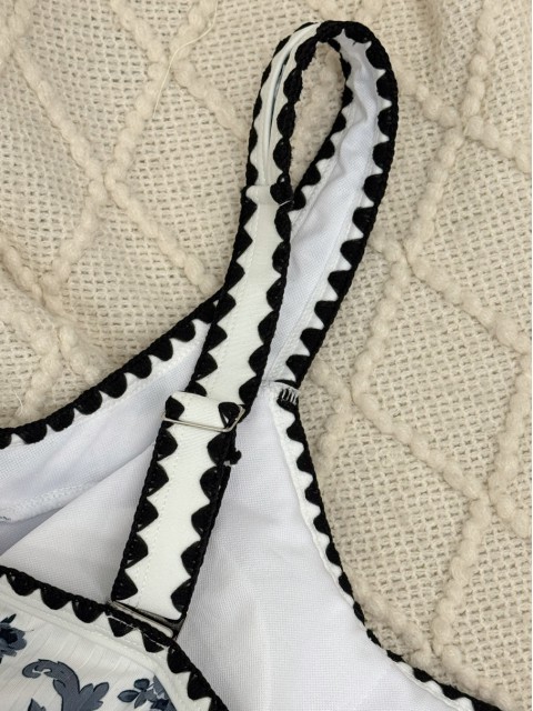 Mid Waisted Floral Print White Bikini Set