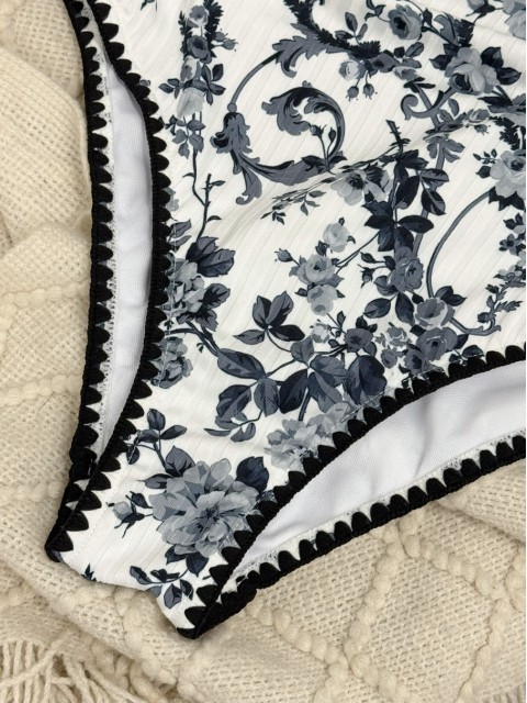 Patchwork Floral Print Black Bikini Set