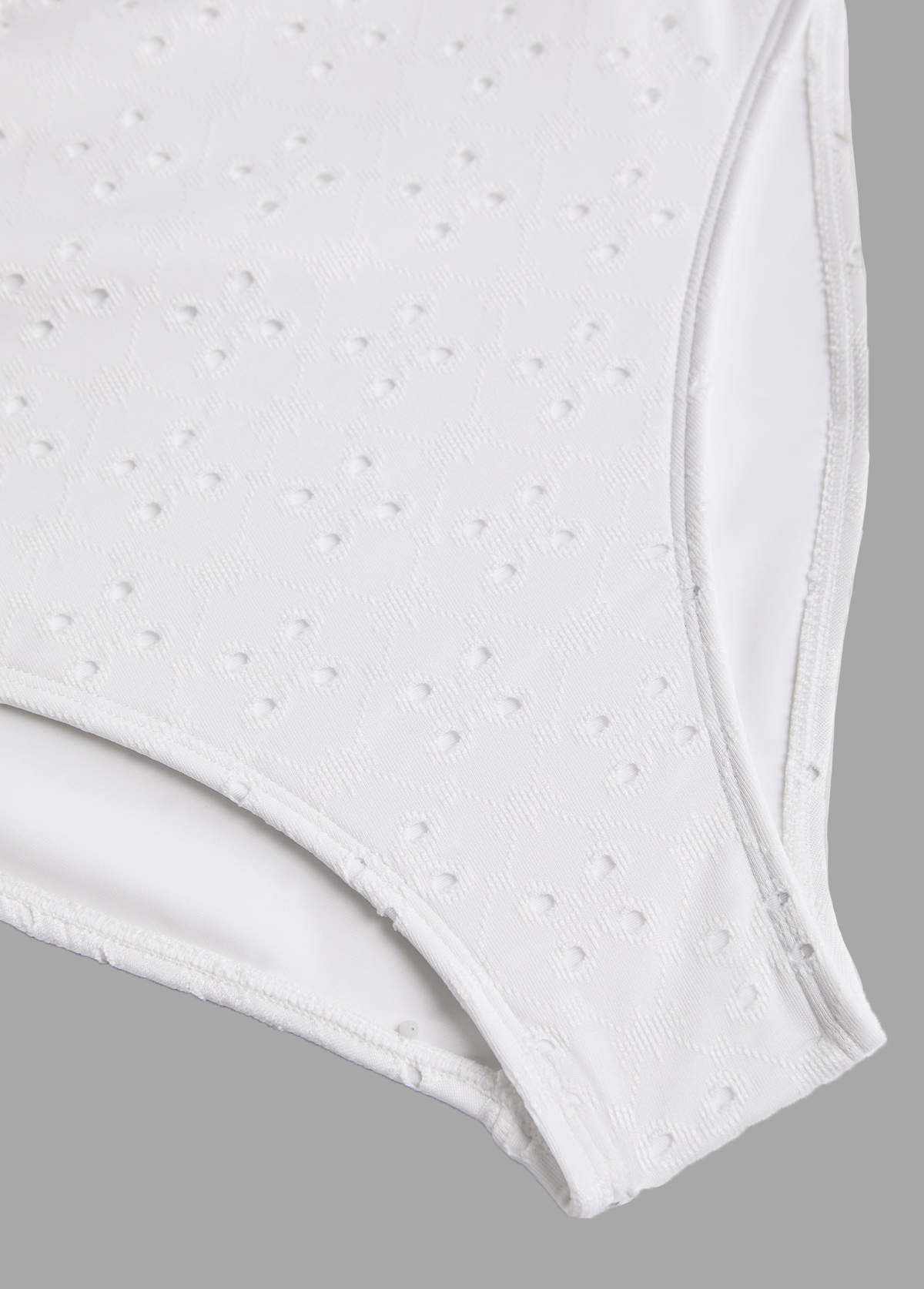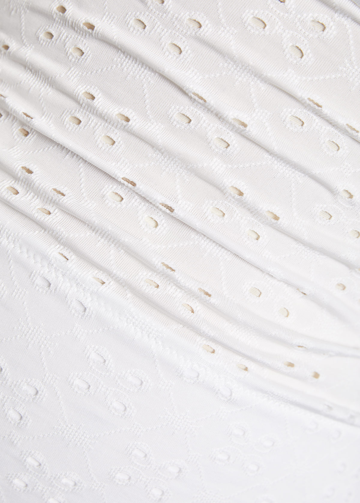 Pure white and effortlessly chic, this one piece features a breathable, cut-out fabric for a light and airy feel. The ruched waist enhances your curves while providing tummy control, offering both style and confidence. Perfect for lounging in the sun or a dip in the sea.