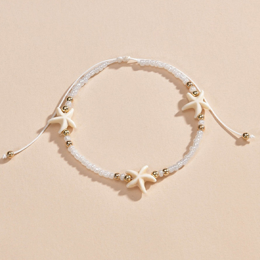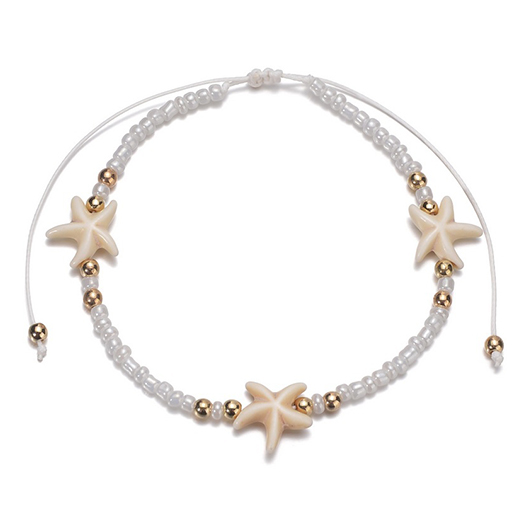 women's clothes / Jewelry / Anklets  /  Beige Alloy Starfish Beaded Detail Anklet