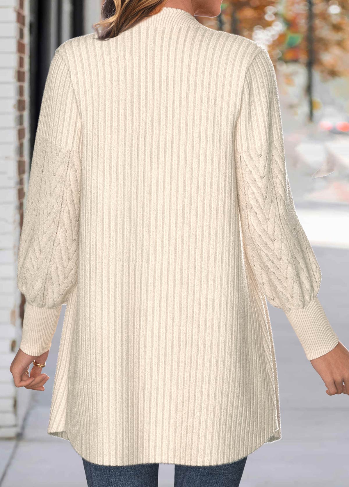 Wrap yourself in cozy elegance with this ivory cardigan featuring stylish batwing sleeves. The button-up front adds a touch of relaxed charm, while the soft brushed lace sleeves elevate the design with delicate detail. Crafted from soft knit fabric, this mid-length piece offers flattering tummy coverage, perfect for any casual outing.