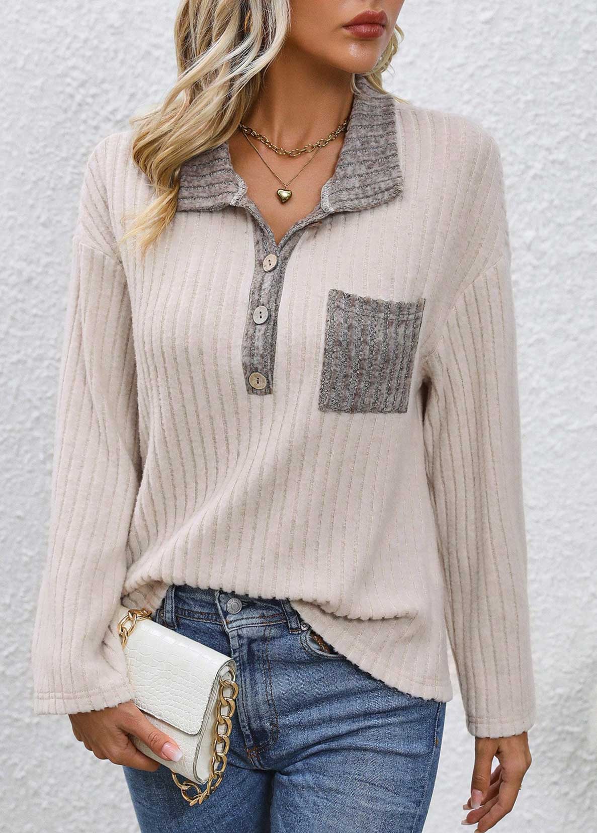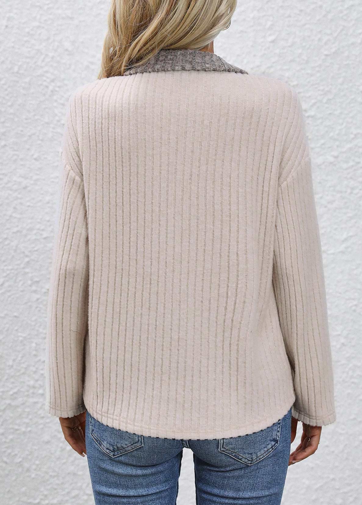 Grey Plaid Long Sleeve Turn Down Collar Sweatshirt