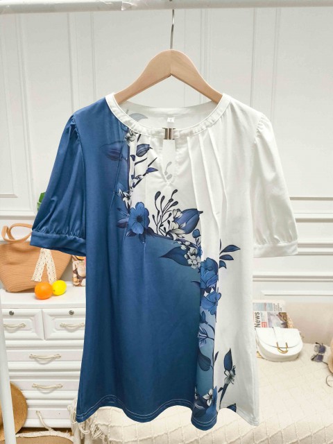 Blackish Green Tummy Coverage Geometric Print Blouse