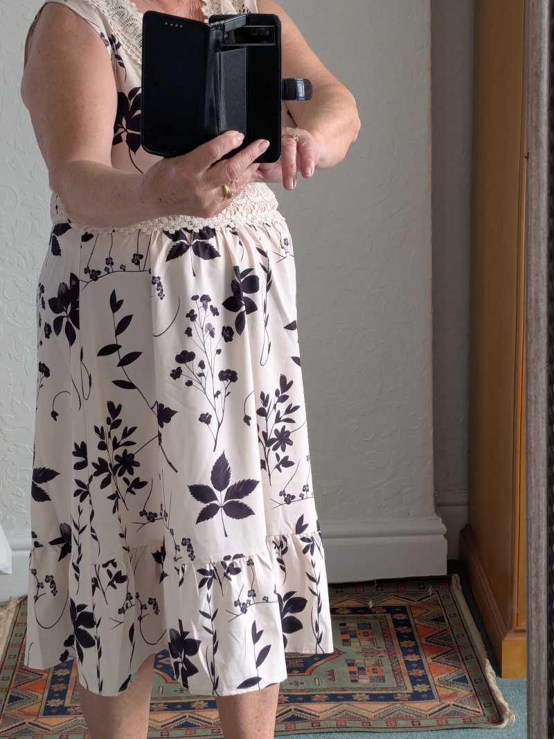 Navy Tummy Coverage Floral Print Dress and Cardigan