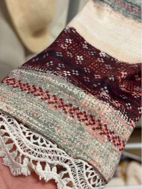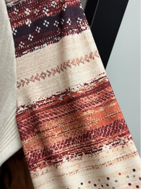 Light Camel Tummy Coverage Tribal Print T Shirt