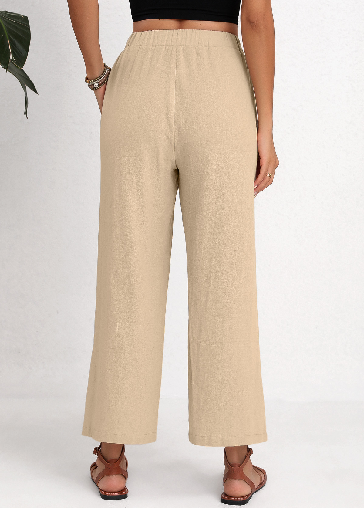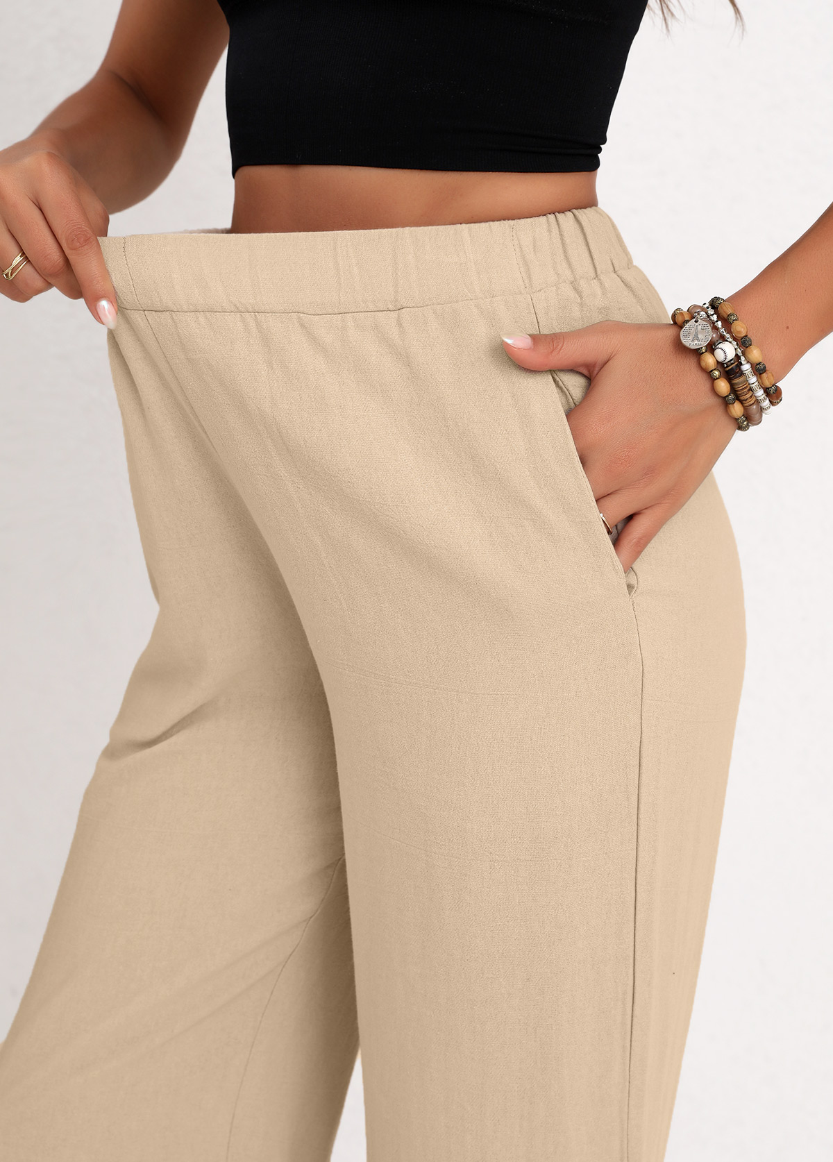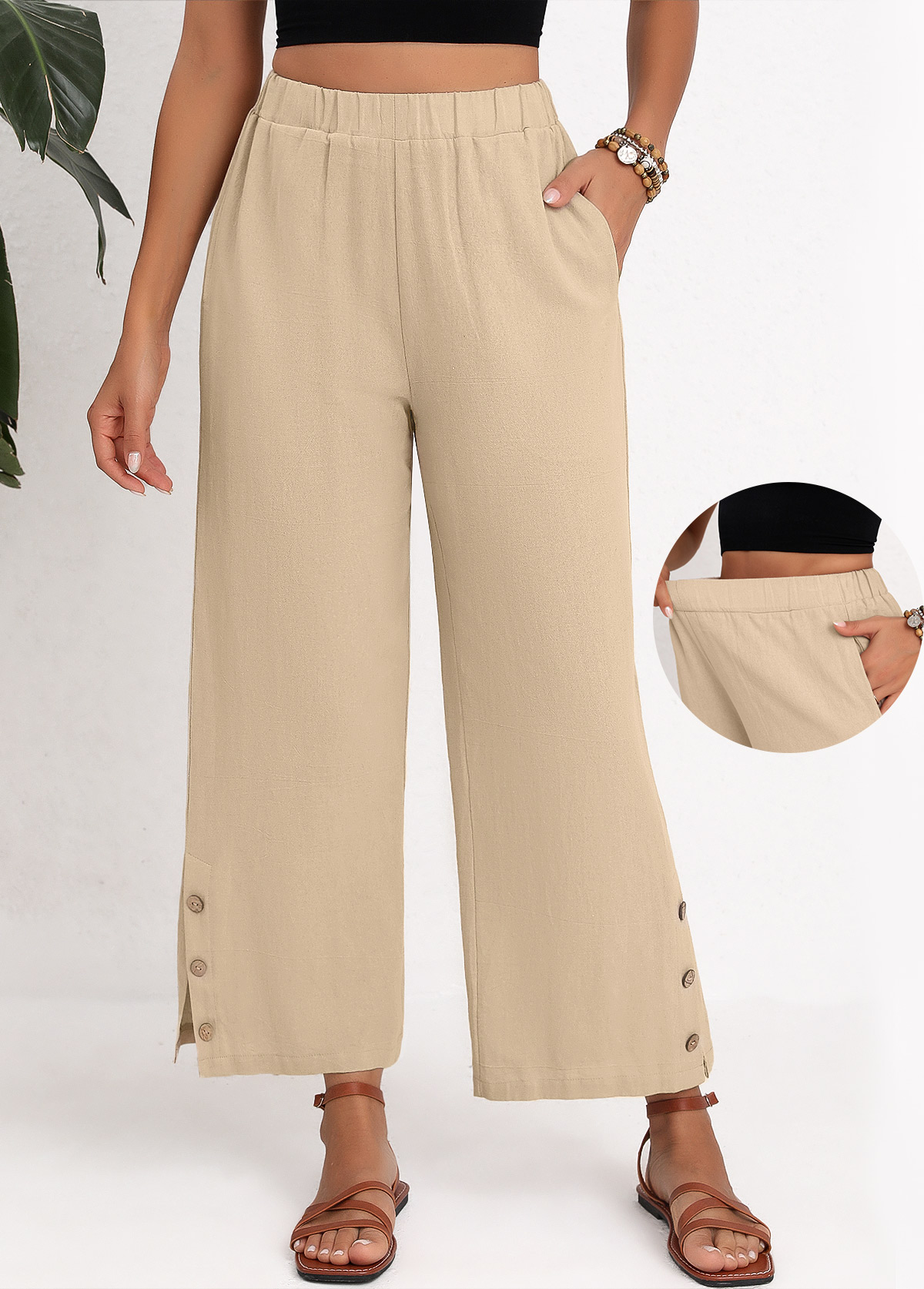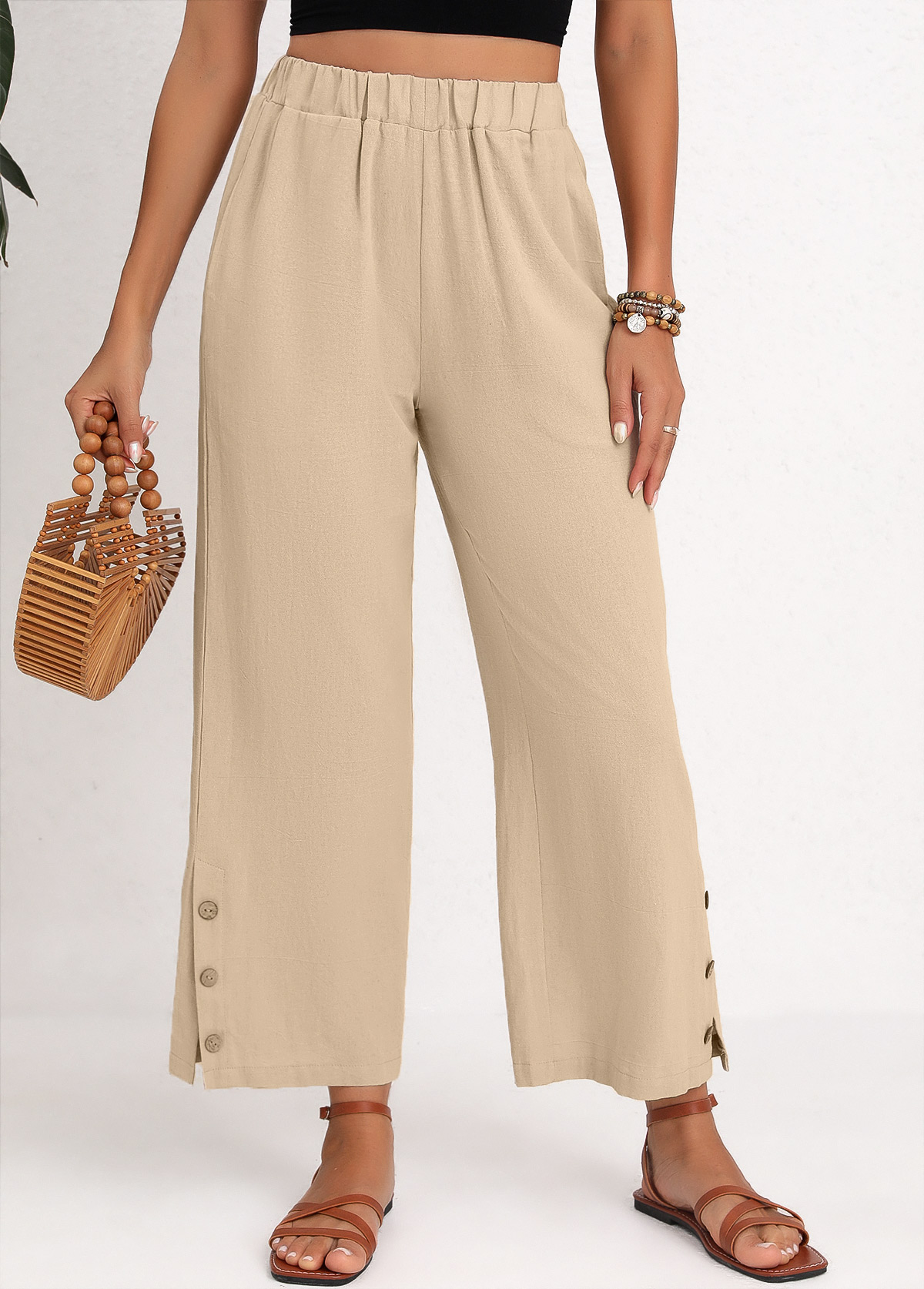 women's clothes / Bottoms / Pants  /  Beige Split Elastic Waist High Waisted Pants