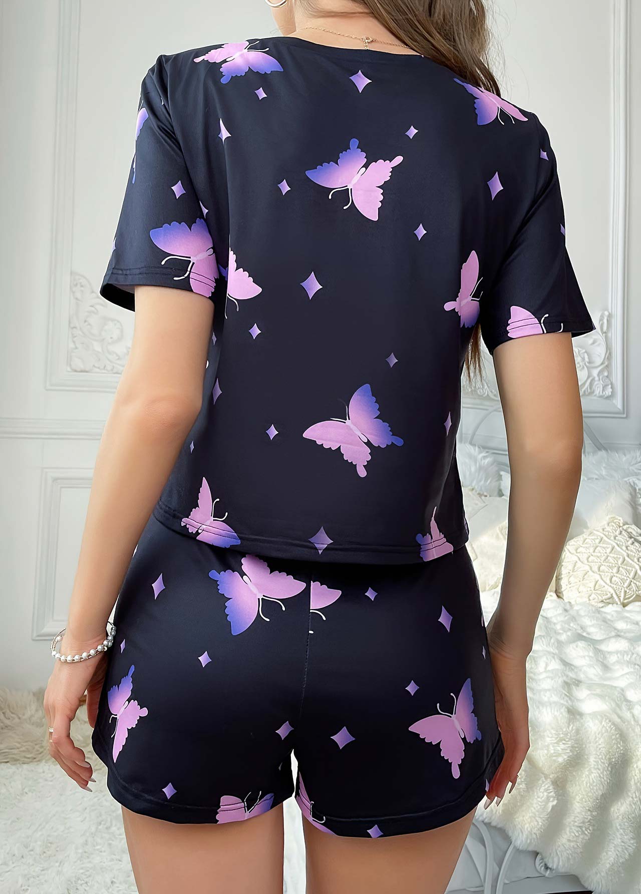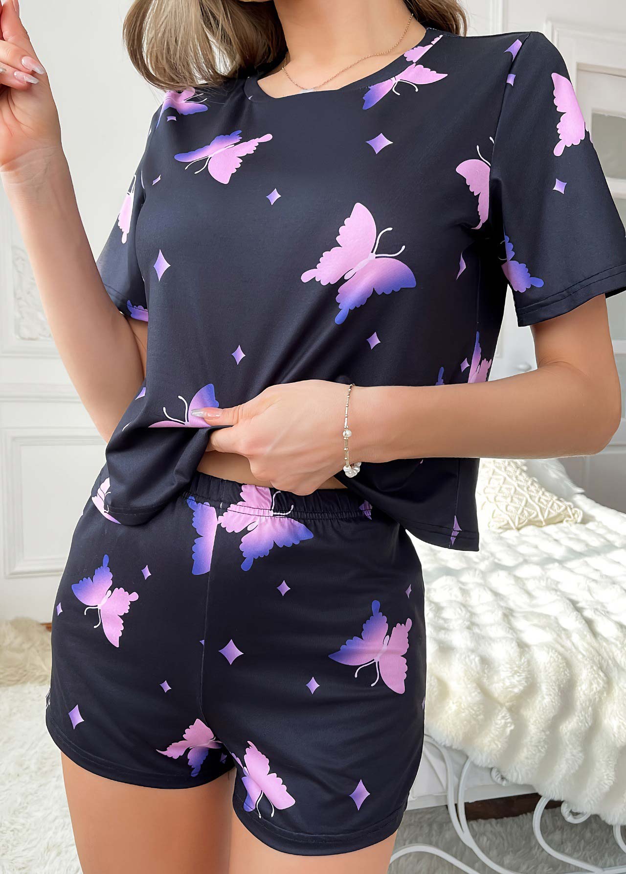 Black Animal Print Short Sleeve Lounge Top and Shorts
