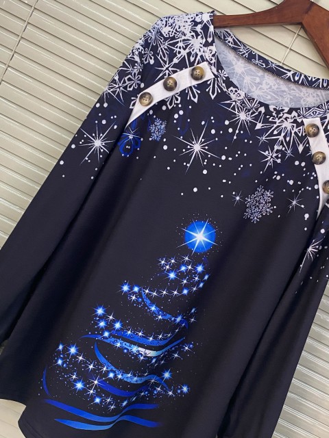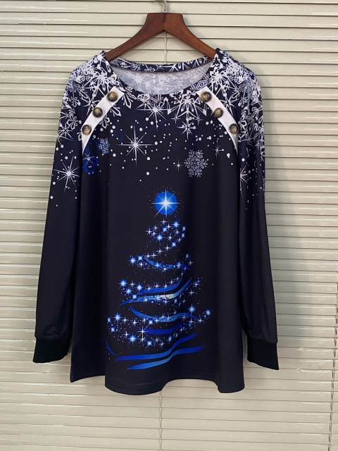 Navy Tummy Coverage Tribal Print Long Sleeve Sweatshirt