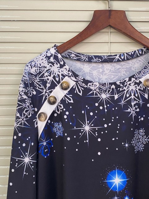Dusty Blue Tummy Coverage Geometric Print Long Sleeve Sweatshirt