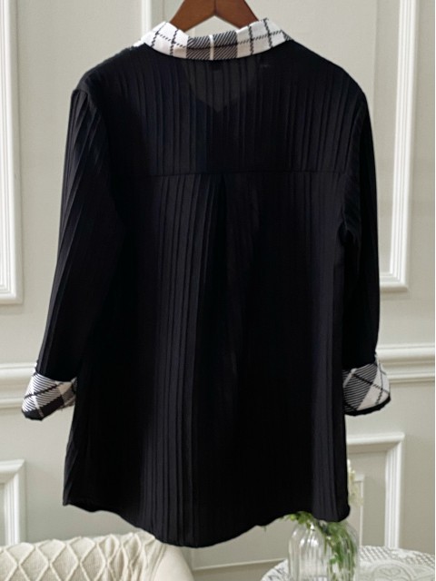 Black Zipper 3/4 Sleeve Split Neck Shirt
