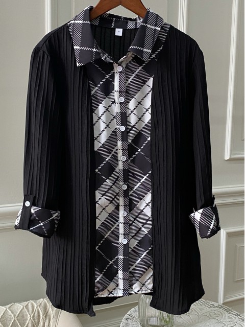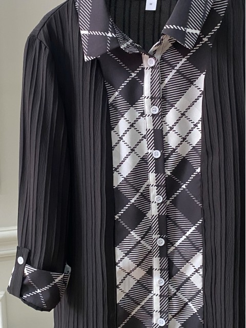 Light Blue Tummy Coverage Plaid Long Sleeve Shirt