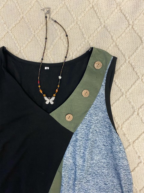 Light Blue Patchwork Floral Print Sleeveless Tank Top