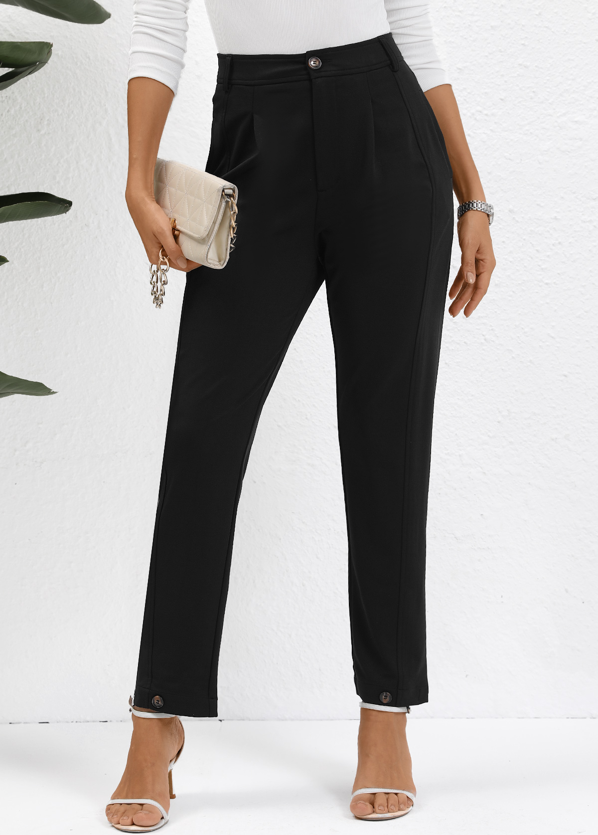 women's clothes / Bottoms / Pants  /  Black Button High Waisted Ankle-length Pants