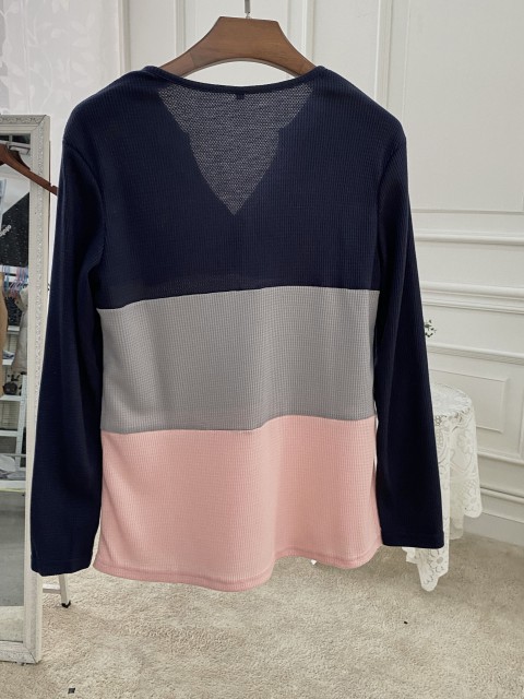 White Patchwork Long Sleeve Round Neck T Shirt