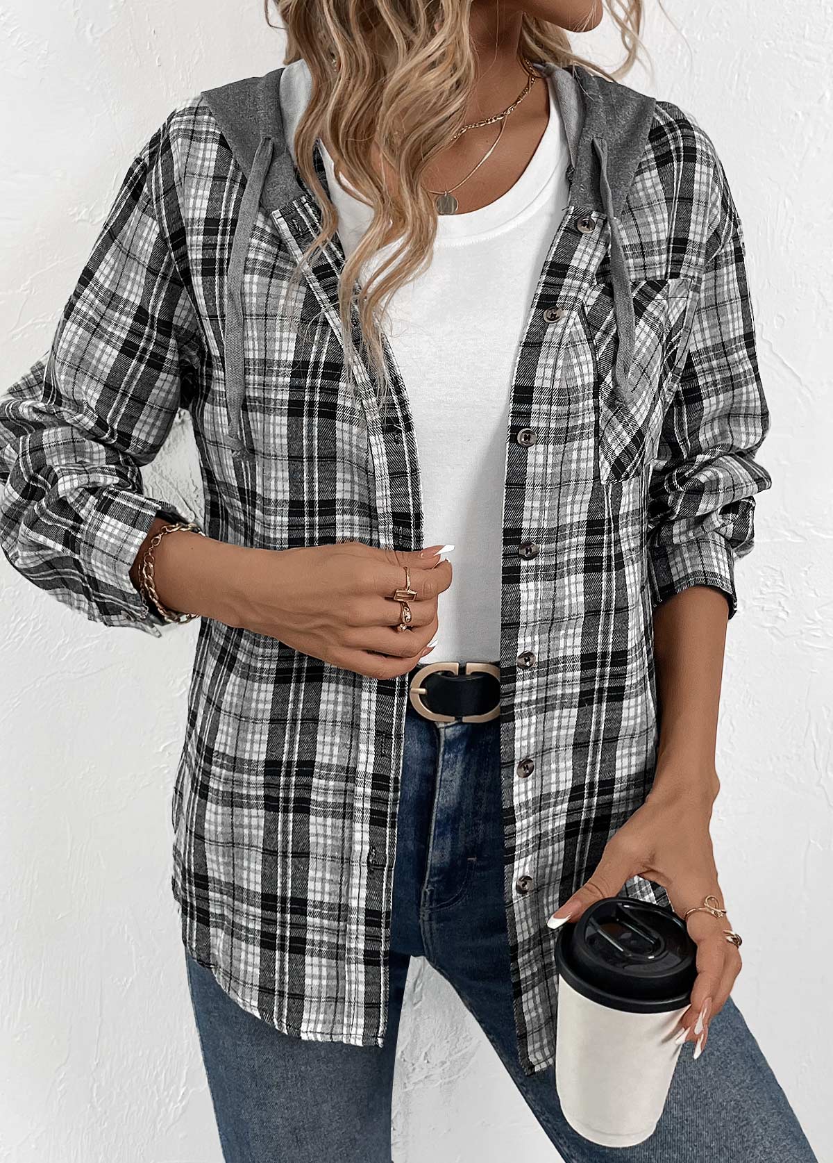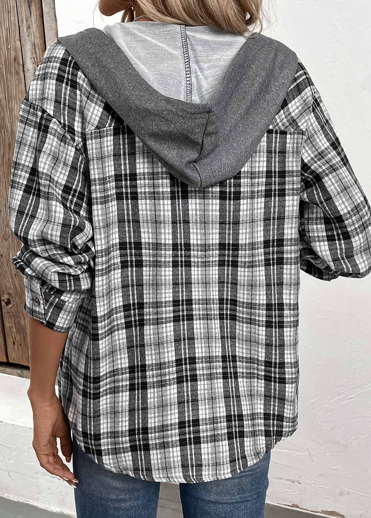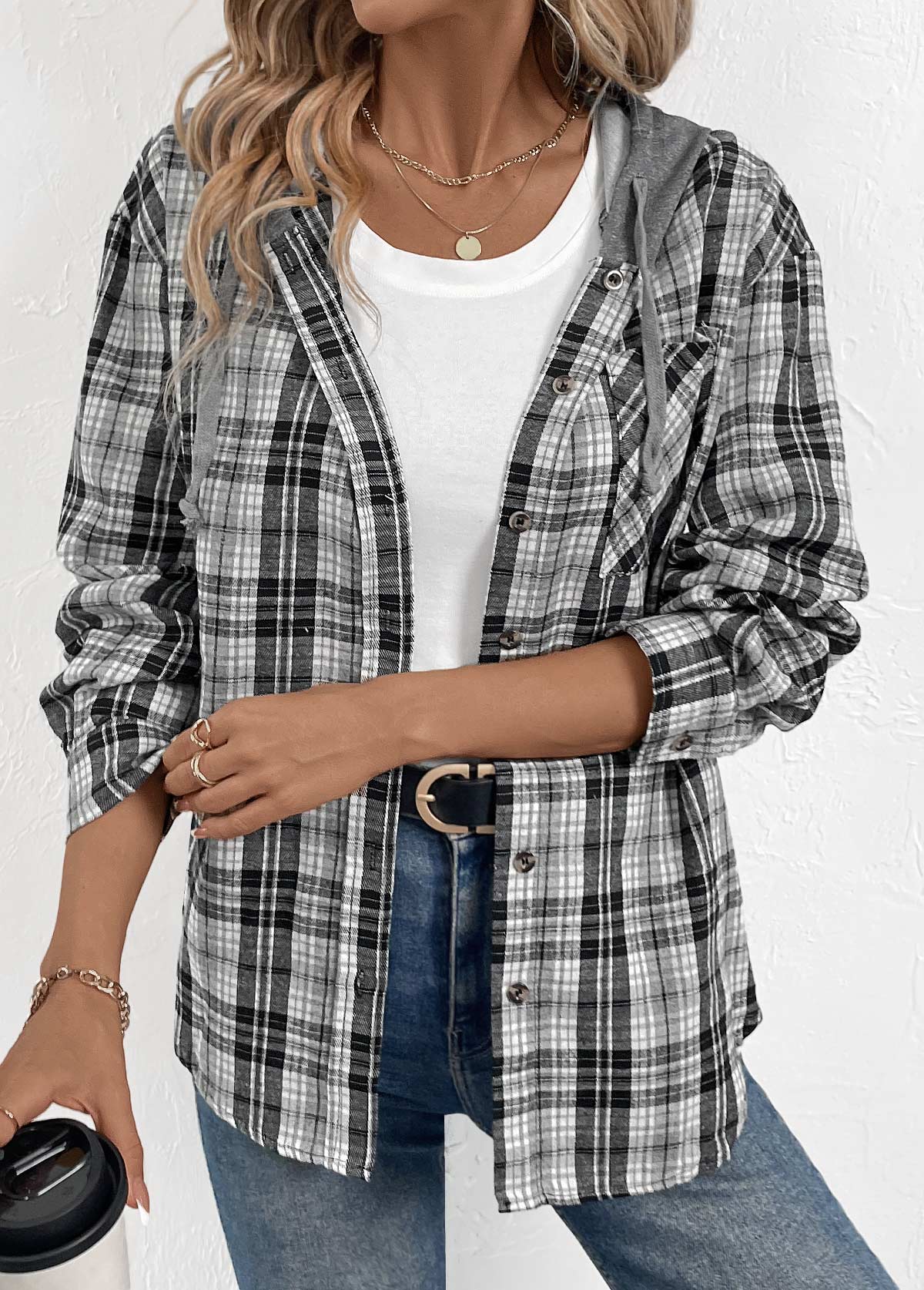 Grey Plaid Long Sleeve Turn Down Collar Sweatshirt