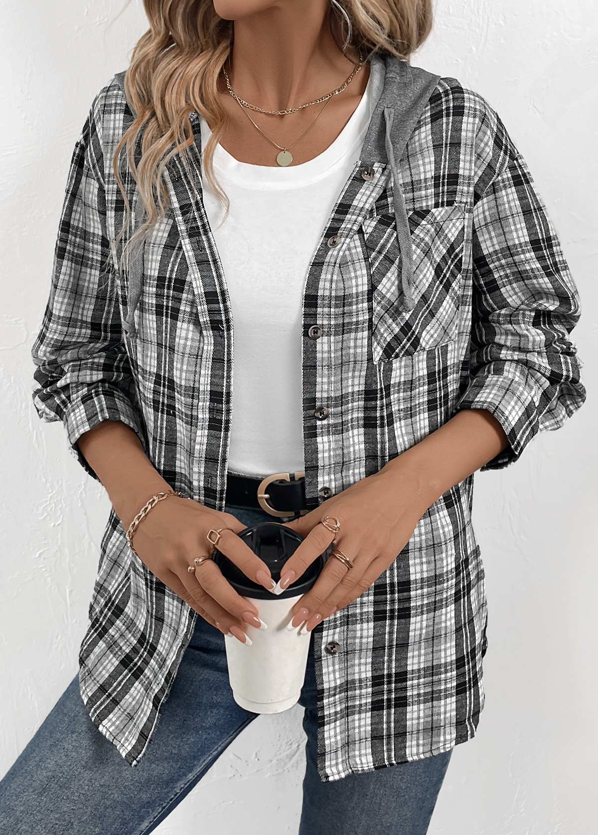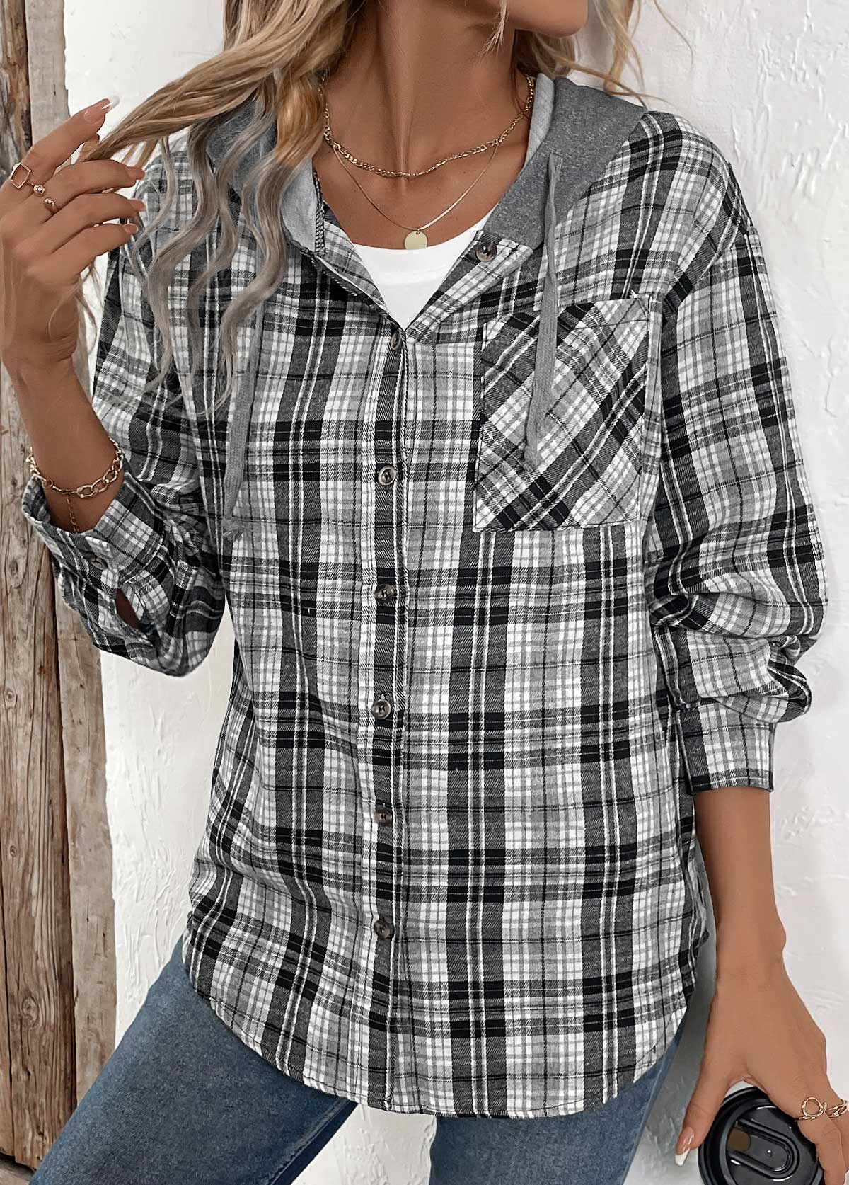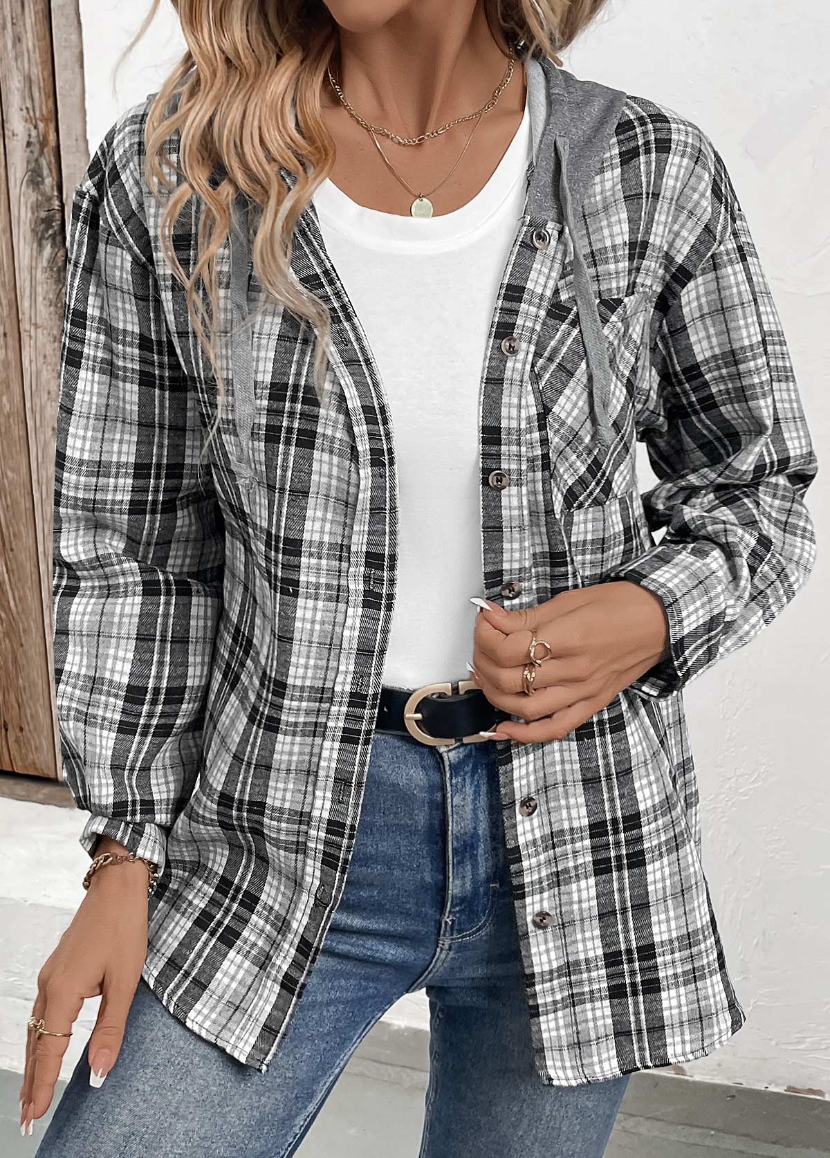 Grey Plaid Long Sleeve Turn Down Collar Sweatshirt