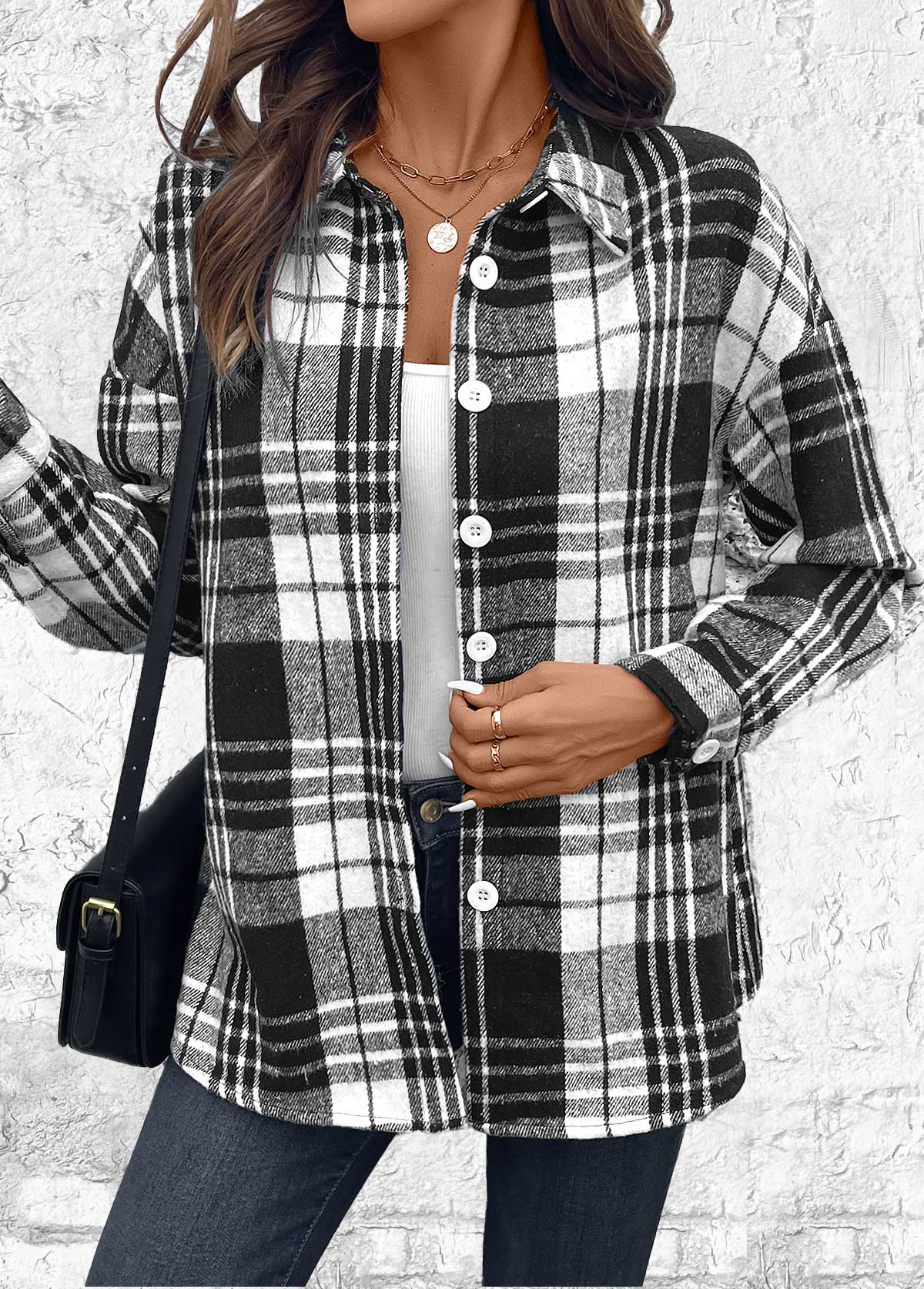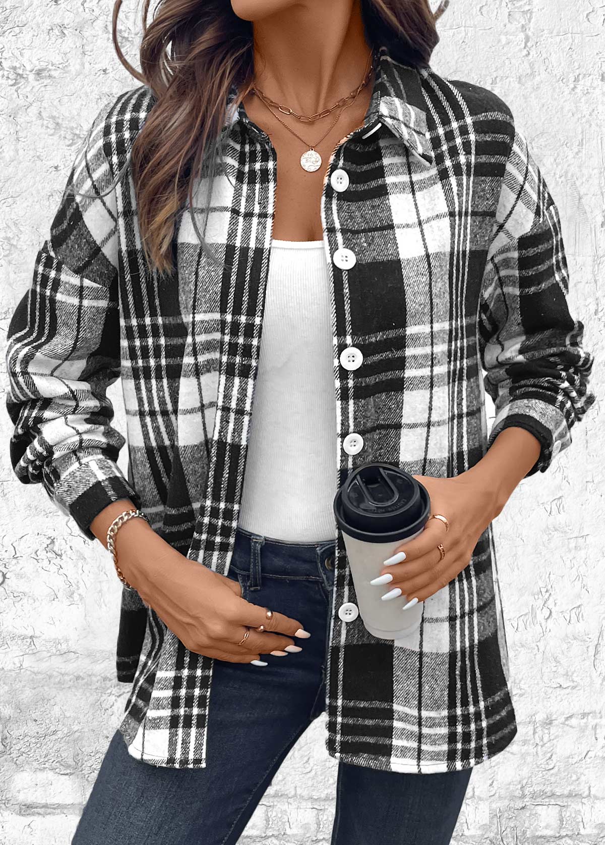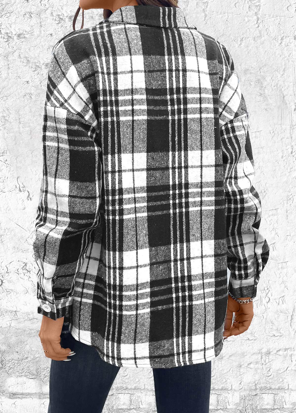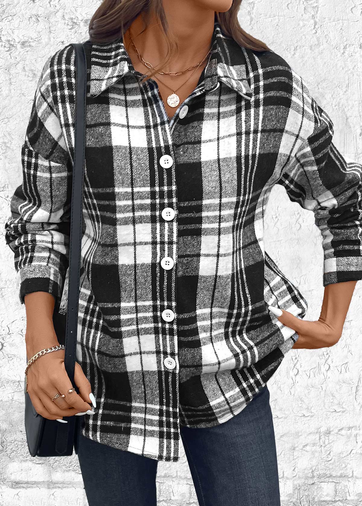 Light Blue Tummy Coverage Plaid Long Sleeve Shirt