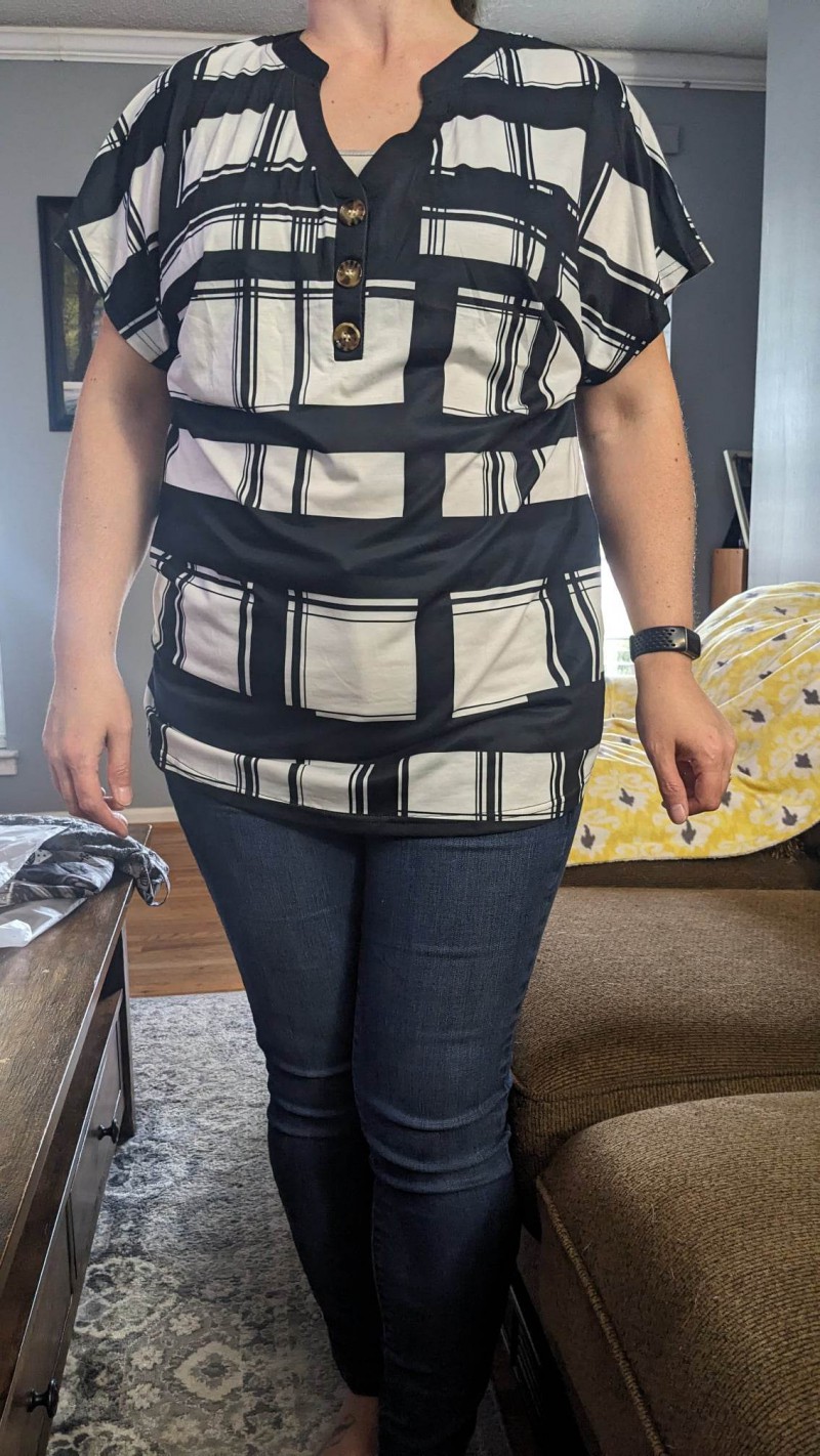 Blackish Green Tummy Coverage Geometric Print Blouse