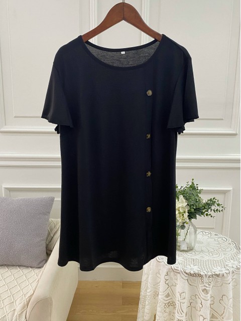 Black Tummy Coverage Dazzle Colorful Print T Shirt