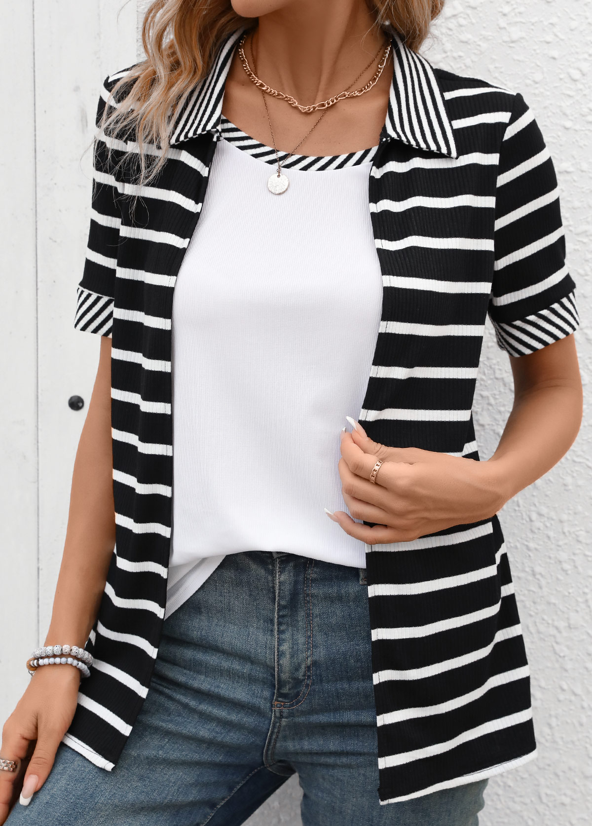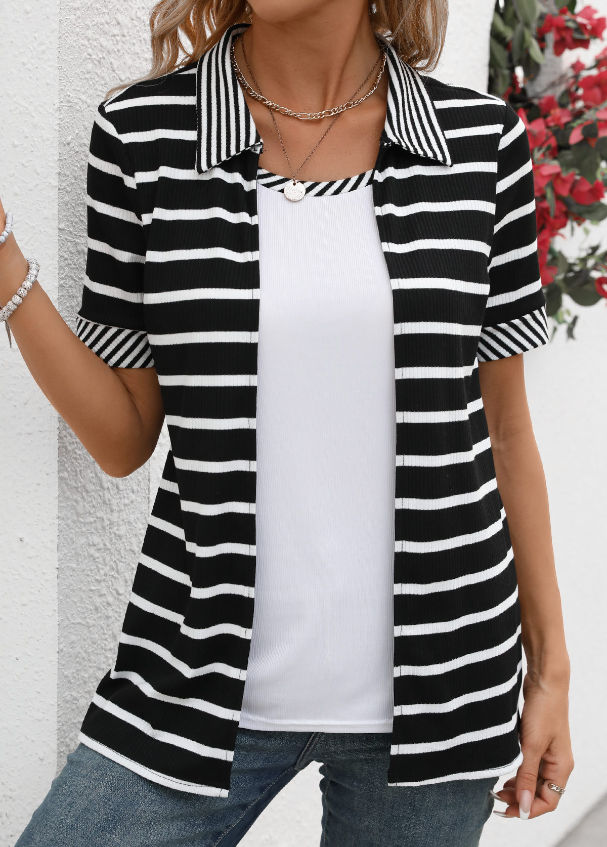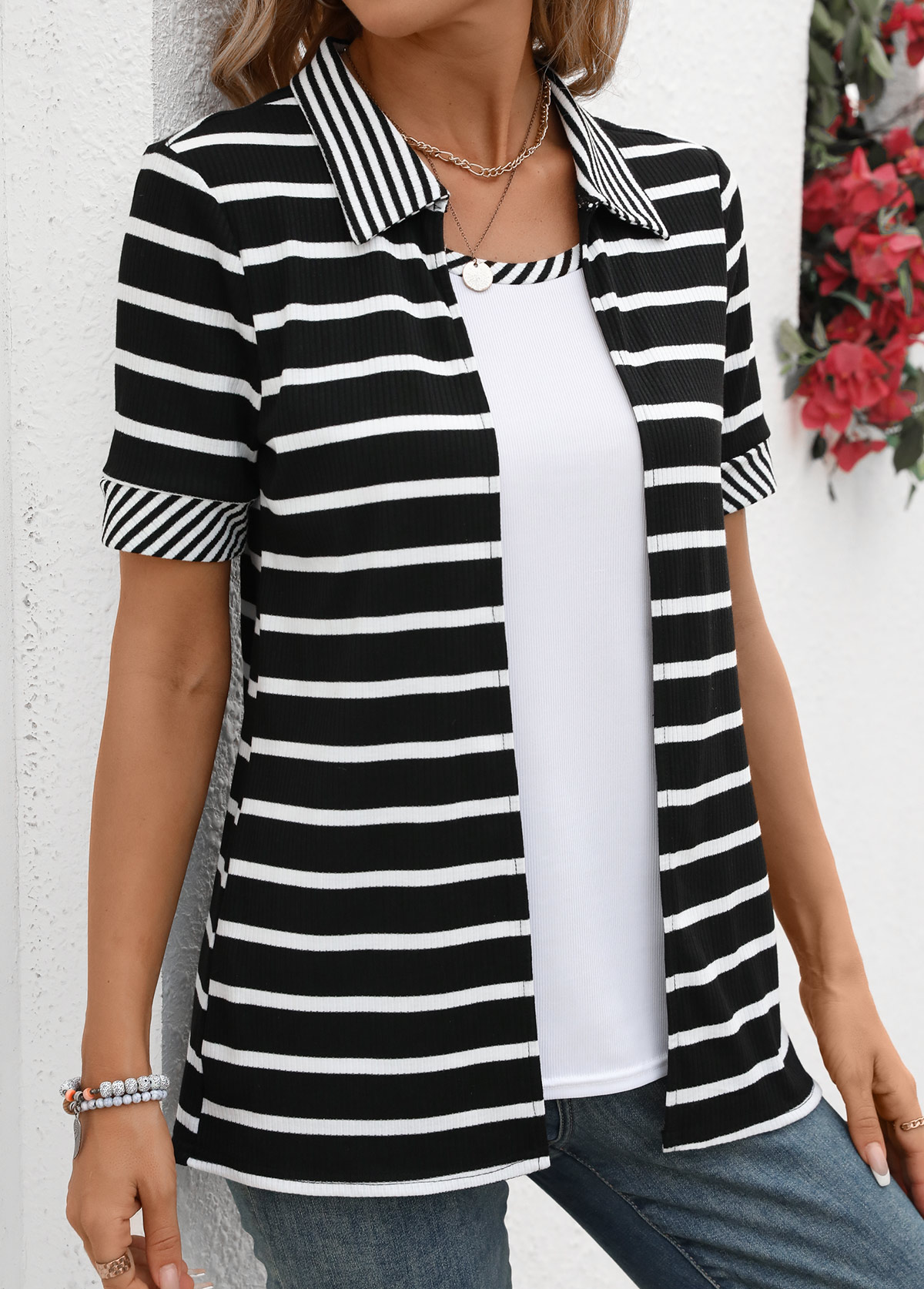 Multi Color Bowknot Striped Short Sleeve T Shirt